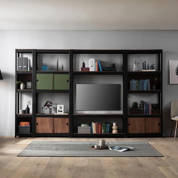Best Home Fashion Kepsuul 77 In Black Wood 4 Shelf Standard Bookcase With Adjustable Shelves Kepsuul 5s 80195 Black The Home Depot